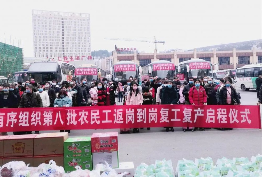遵義是瑞安復工人員最多的勞務輸出地區。2019年年底,從瑞安返回遵義的就有3萬多人。為搶進度,工作組與遵義有關人員一路電話聯系,到達第二天,第一批96名新老務工人員便已坐上4輛大巴車開往瑞安。