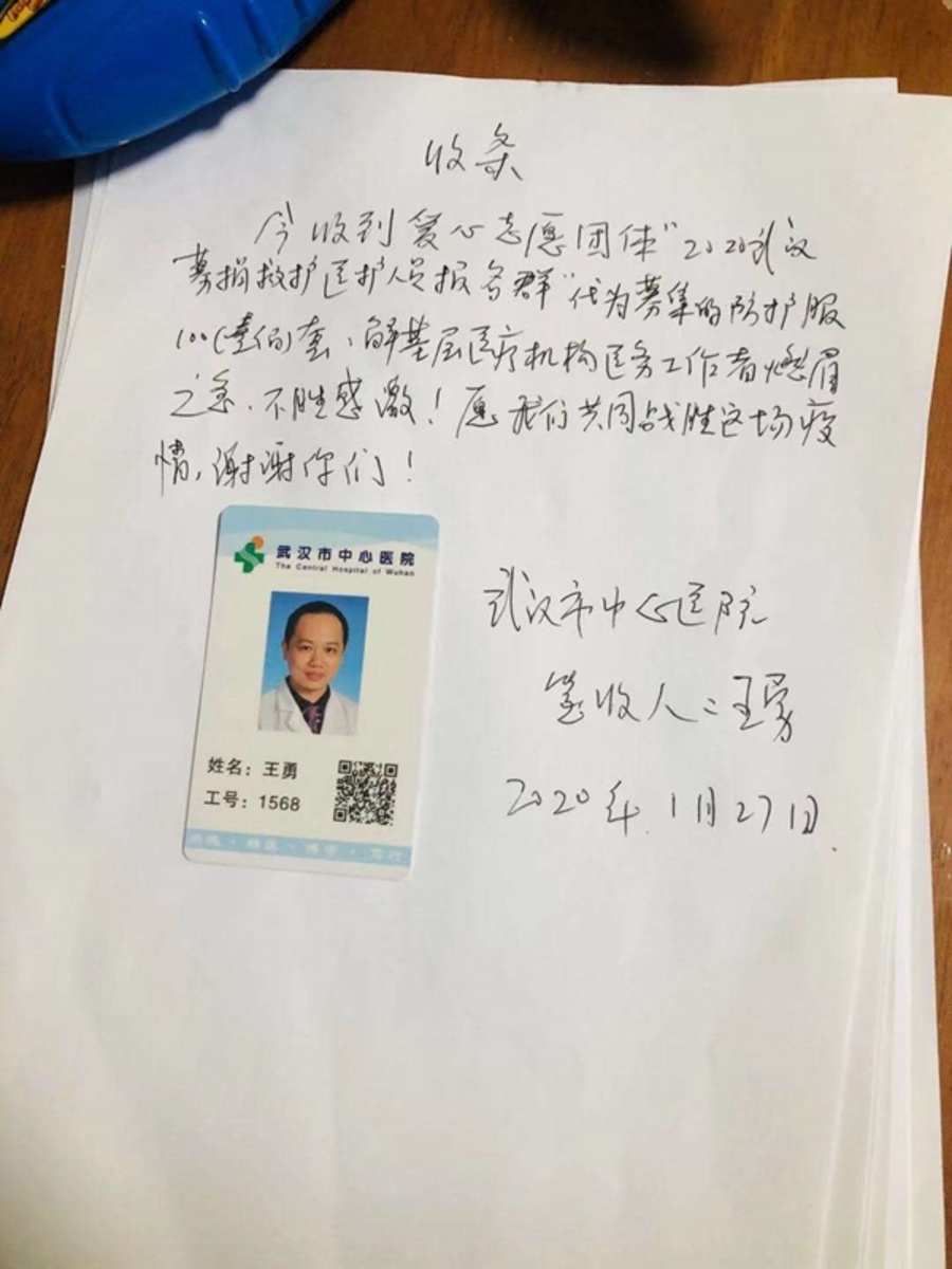 于是,和幾個同樣留守武漢的朋友一合計,我們開始了解一線醫護人員的現狀,咨詢我們所能做的具體工作。經了解,我們得知因為疫情爆發,醫院的醫療物資儲備嚴重不足,越來越多的一線醫護人員赤膊上陣。我們就堅定了一個念頭,擔當志愿者開展募捐活動,支持一線抗擊疫情。