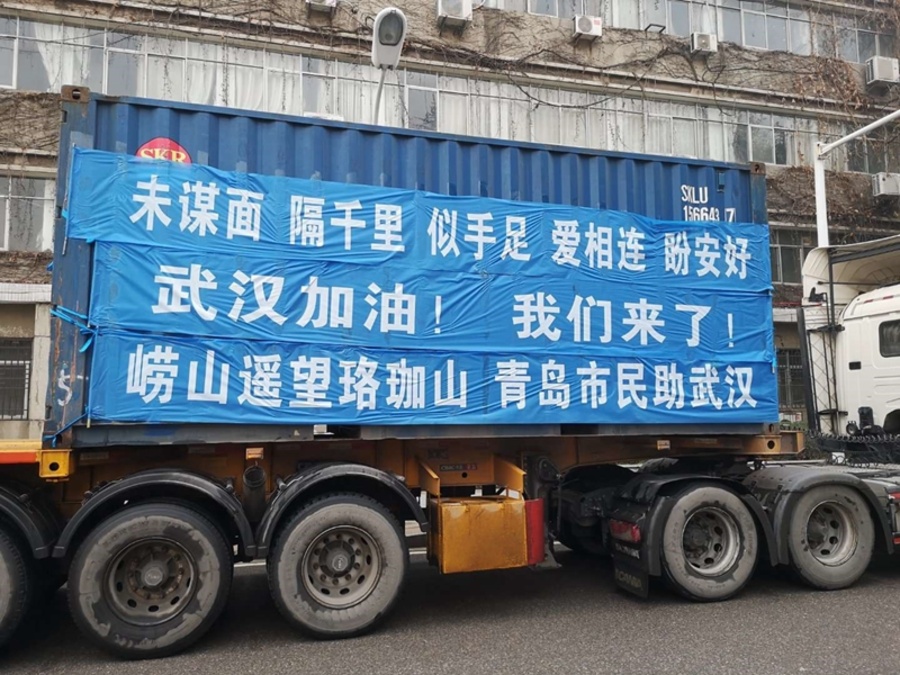 其中我們發動青島的朋友們采購捐贈物資,包車送到武漢一線。經過三天緊張的募捐工作,順利從青島募捐到價值近20萬元的消毒水、醫用酒精、醫用手術帽子、醫用手套等十多噸物資。于2月3日凌晨順利進入武漢,并在當天緊急送往武漢協和醫院,武漢大學人民醫院東院、新洲區中醫院等8家醫院。