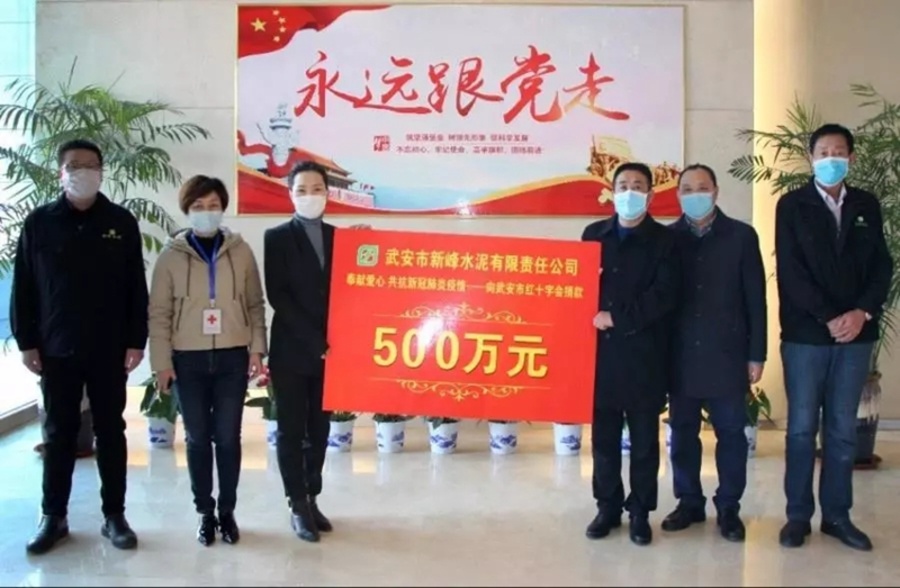 2月9日下午,九三學社社員、武安新峰水泥有限公司董事長田海奎在公司辦公樓前舉行“奉獻愛心—共抗新冠肺炎疫情”捐贈儀式。新峰水泥公司向武安市紅十字會捐款500萬元,用于新冠肺炎疫情防控工作。