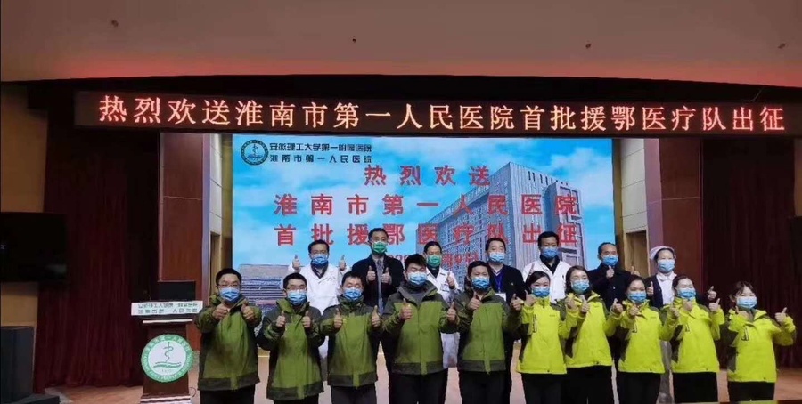 2月9日中午,淮南市第一人民醫(yī)院首批援鄂醫(yī)療隊出征。醫(yī)療隊由十人組成,來醫(yī)院各科骨干,其中醫(yī)生4人?;茨暇湃鐔T、淮南市第一人民醫(yī)院消化內(nèi)科主治醫(yī)生魯明位列其中。科主任徐斌回憶說深夜接到醫(yī)務(wù)科電話告知醫(yī)院需要緊急抽調(diào)醫(yī)生去湖北支援,即刻打電話給魯明。電話那頭,魯明沒有一絲遲疑,等不及和愛人商量便立刻回答“我去”。