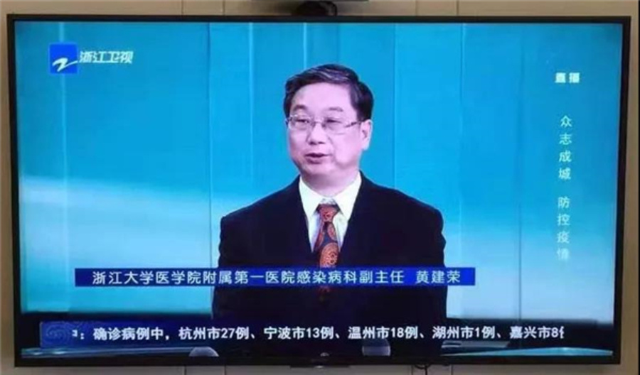 九三學社浙江省委委員、浙江大學傳染病診治國家重點實驗室副主任黃建榮除了做好院內(nèi)診治,還作為省抗擊新型冠狀病毒肺炎專家組成員,參與制訂全國診治指南;指導全省定點醫(yī)院診治病人(包括赴溫州確診全省第一、二例病人);赴衛(wèi)健委機關(guān)等地開展培訓;作為省衛(wèi)健委指定的媒體發(fā)言人接受浙江電視臺、錢江視頻等媒體采訪,向大眾講解科普相關(guān)知識。