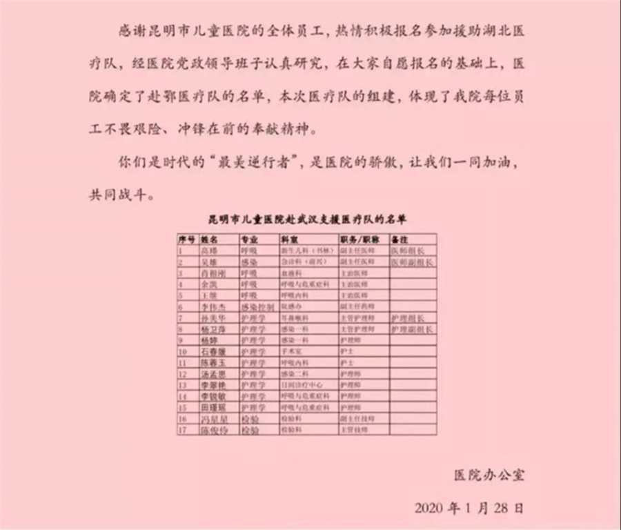 九三學(xué)社昆明市委主委、昆明市兒童醫(yī)院院長張鐵松,在1月29日下午“昆明市兒童醫(yī)院援助湖北醫(yī)療隊(duì)出征前動(dòng)員儀式暨組建醫(yī)院疫情防控應(yīng)急加強(qiáng)隊(duì)伍儀式”上說:“現(xiàn)在是國家最危難的時(shí)候,也是國家最需要我們醫(yī)務(wù)工作者的時(shí)候,我們要牢記使命、勇于擔(dān)當(dāng),勇赴防疫第一線!”昆明九三的領(lǐng)頭人,在疫情來襲之時(shí),牢記使命,勇于擔(dān)當(dāng),率領(lǐng)昆明市兒童醫(yī)院醫(yī)護(hù)人員共克時(shí)艱。在接到派員援鄂的通知1小時(shí)后便確定了赴鄂醫(yī)療隊(duì)5名醫(yī)生、9名護(hù)士、2名檢驗(yàn)技師、1名感控人員共17人的名單。