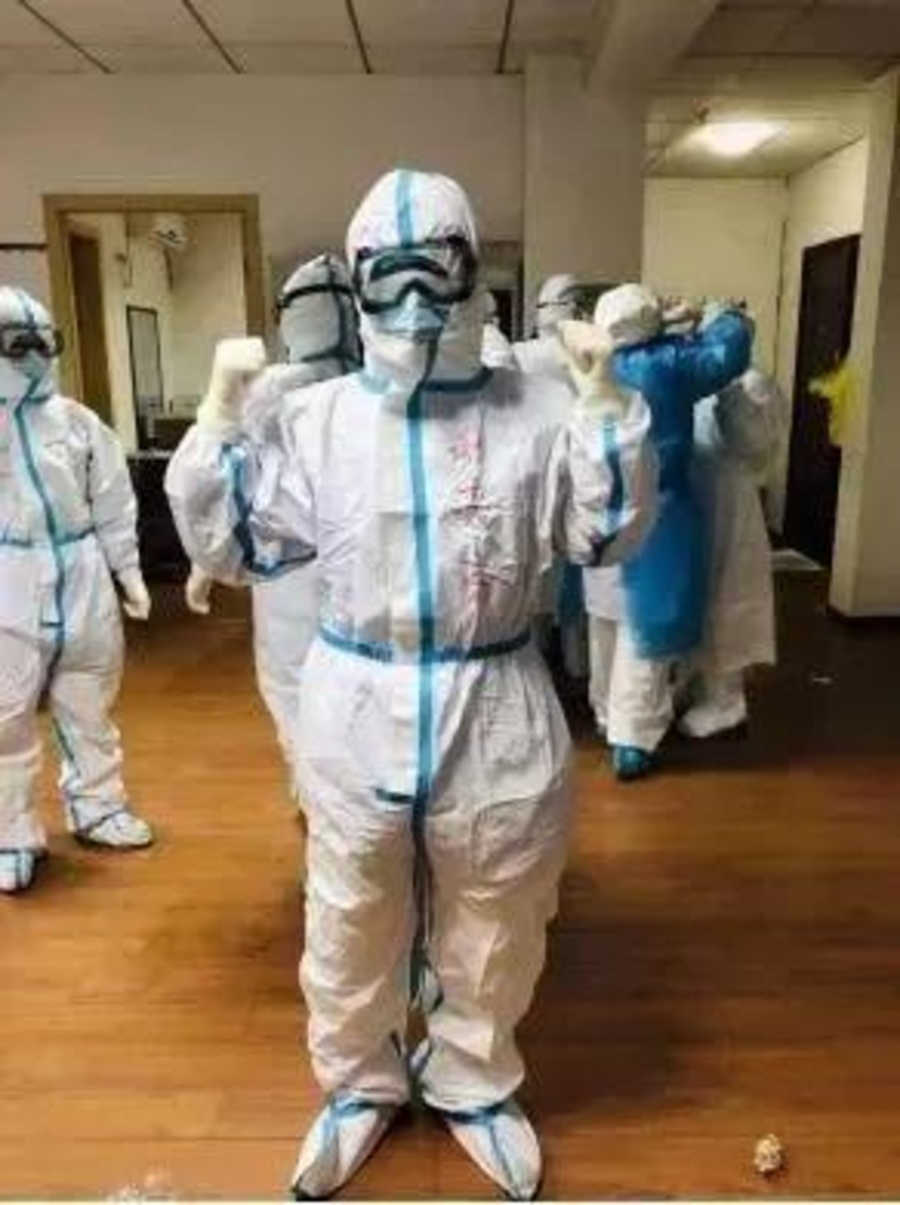 1月30日凌晨小組集合,大家全副武裝上崗接班。一腳踏進病房,滿滿的病患,一眼望去,全是危重病人,大部分是確診和疑似冠狀病毒性肺炎患者。小組隊員各司其職忙碌起來,其中一個危重患者基礎疾病多,情況非常不好,經過一個多小時的全力救治,大家已經精疲力盡,隔著防護服汗流浹背,但還是沒能留住他,我們心情都很沉重。愿天堂沒有痛苦~