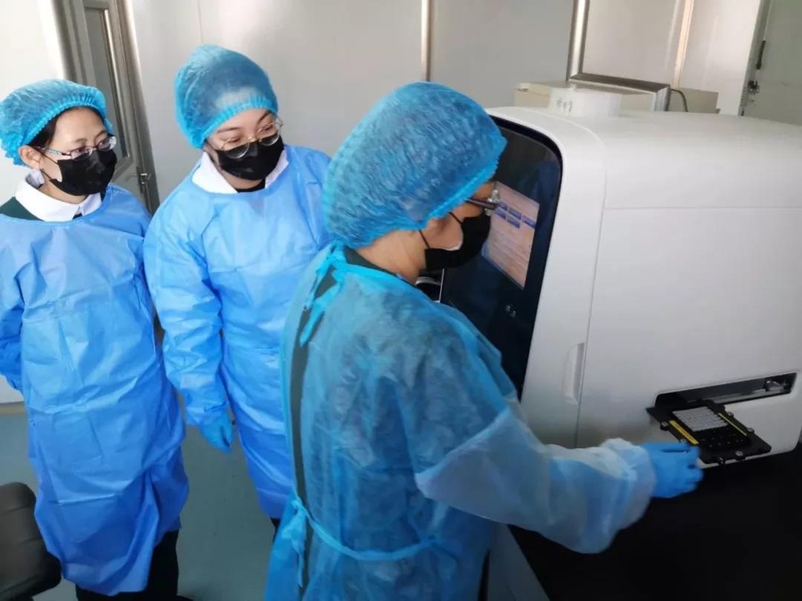 長春市衛生聯合支社吳波、李晨光、隋天卓、劉玉蘭在檢測樣本