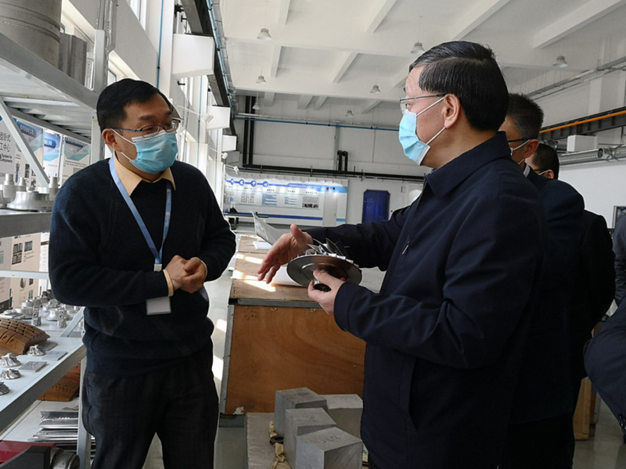 在展廳,錢鋒仔細聽取了社員、中國航發商發公司副總經理邵馳對公司科研攻關的情況介紹,他還就公司人才培養、校企合作、梯隊搭建發中心,王宇晗和社員、總經理劉鋼介紹了近年來公司在高端數控裝備領域所取得的突破和成績。當得知公司在多個領域達到了國內甚至國際、國際合作等具體問題,進行了深入了解和詢問。