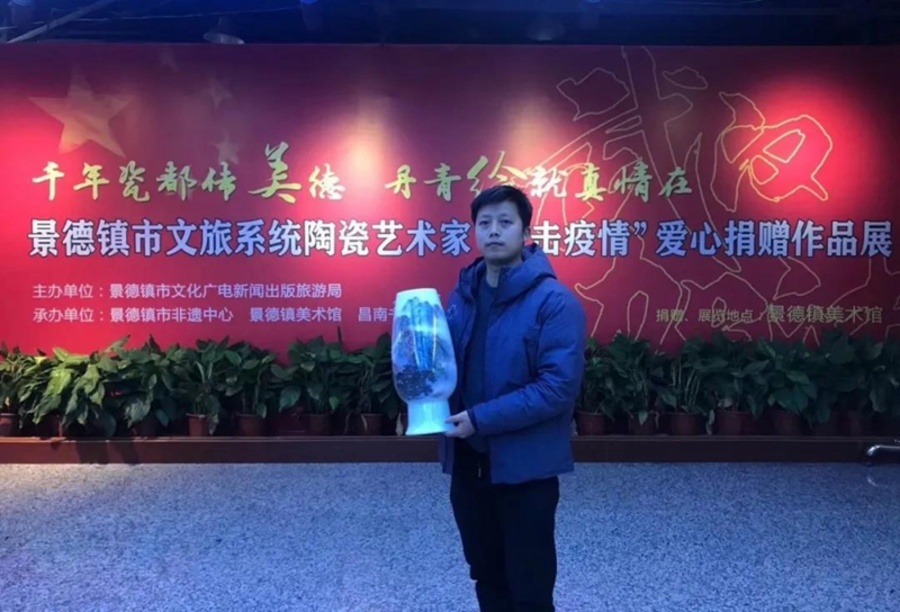 石曉武,景德鎮民間陶瓷工藝美術家。疫情發生后,他連夜創作粉彩作品“不懼風雨”,參加景德鎮市文旅系統陶瓷藝術家“抗擊疫情”愛心捐贈作品展,用實際行動支援疫情防控阻擊戰。