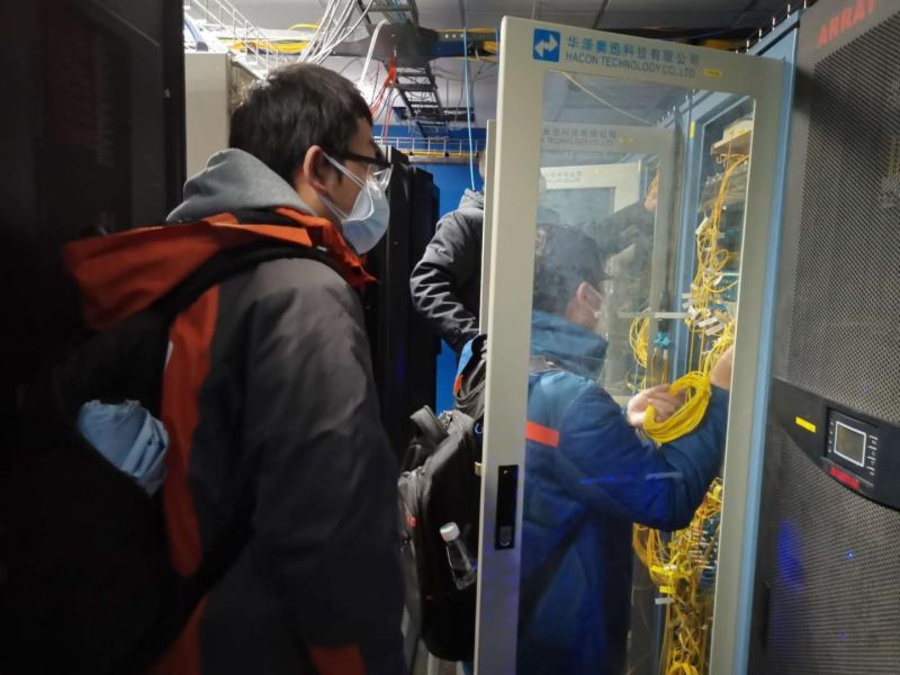 上海聯通的工程師昨晚來到上海中山醫院進行5G設備調試,為遠程會診做準備。