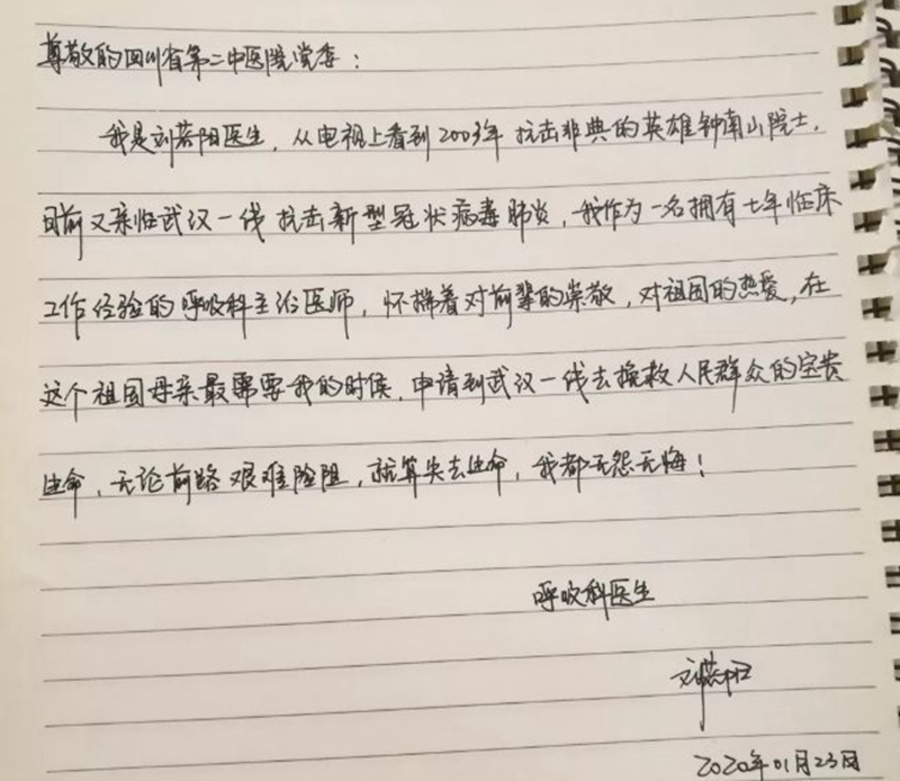 她的請(qǐng)戰(zhàn)書讓人淚目,“無(wú)論前路艱難險(xiǎn)阻,就算失去生命,都無(wú)怨無(wú)悔!”