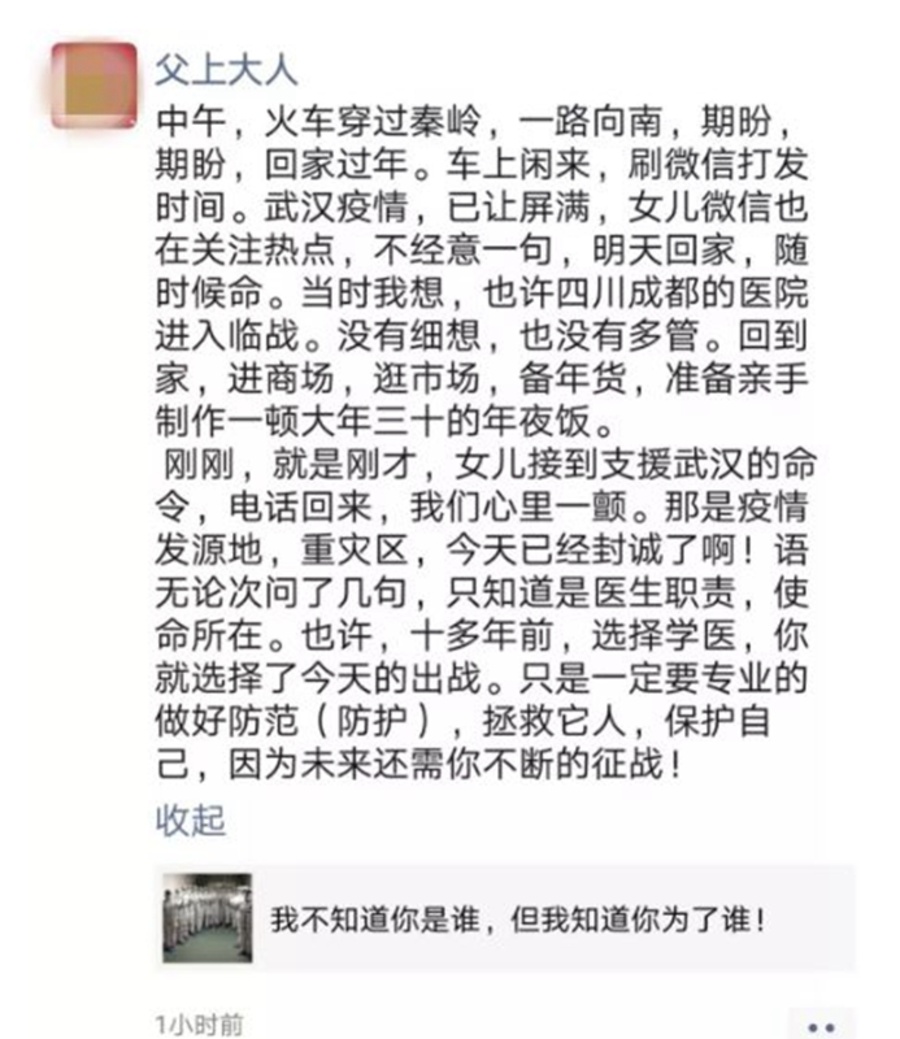 盡管十分擔(dān)憂女兒,但“父上大人”仍給予充分理解和支持,他告訴女兒:“既然選擇學(xué)醫(yī),就應(yīng)該時(shí)刻做好出戰(zhàn)準(zhǔn)備,這是醫(yī)生的職責(zé)所在,使命所然。”