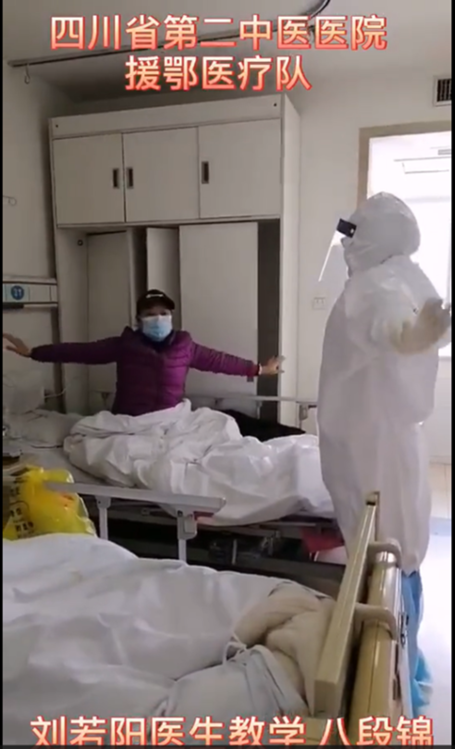 視頻中劉若陽(yáng)在教病員跳八段錦