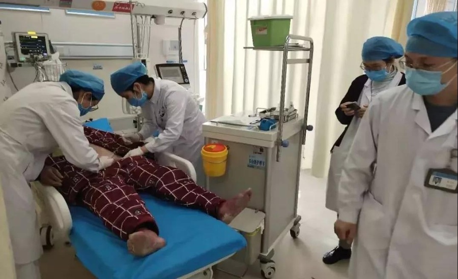 蔣鵬為患者進行氣管插管和動脈穿刺操作