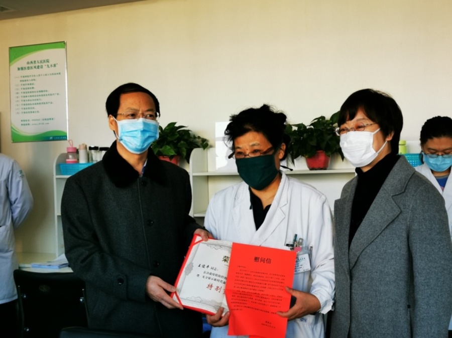 劉萍表示,衷心感謝李青山主委在疫情還未解除的情況下親自帶隊看望慰問我們,作為一名醫護人員同時又作為一名九三社員,就是要沖在第一線,迎難而上,勇于擔當,不畏艱險,敢于做先鋒,運用專業醫學知識,為群眾生命健康保駕護航。