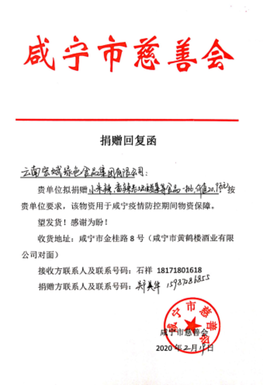 據了解,疫情發生后,2020年1月28日,當得知抗疫前線急需抗疫物資時,作為方便面等調料供應商的云南宏斌綠色食品集團有限公司立即提前復工,從“宅在家里就是貢獻”轉變到“我們也可為抗疫添磚加瓦”,以確保抗疫一線的物資供應。截止2月25日,已經向疫區發出各種風味調料品6310余萬包,泡椒泡姜500余噸,累計發貨80余車,同時要求各供應商至2月底前每天發出兩至三車貨品。在疫情前期,每車運費上漲8000元-12000元的情況下,公司堅持產品不漲價,并支付員工三倍加班工資,合計讓利400多萬元,支持武漢疫情期間物資供應。任洪冰還積極響應國家市場監管總局、中國食品工業協會、中國安全報聯合舉行的“保價格、保質量、保供應”行動倡議承諾書,保障疫情期間的物資供應。與此同時,為了能為疫情區做更多實實在在的事情,經過多方努力與咸寧市慈善會取得聯系,并于2月21日向其捐贈了價值21.44萬元的小米辣、老壇酸菜、風味豆豉、紅油豇豆等1400多件產品。一車車滿載捐贈物資的貨車駛出宏斌公司大門從云南江川出發奔赴湖北咸寧,承載著玉溪九三人對湖北前線同胞滿滿的牽掛與問候,也承載著玉溪九三人對早日抗疫勝利的殷切期盼。