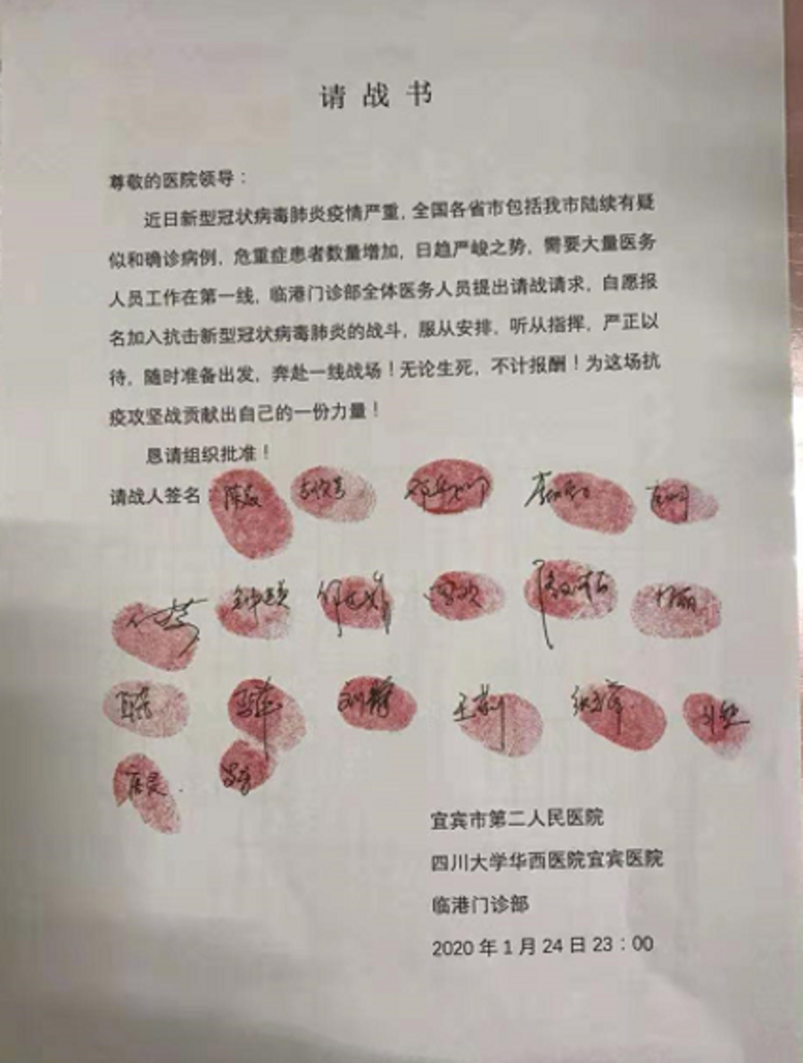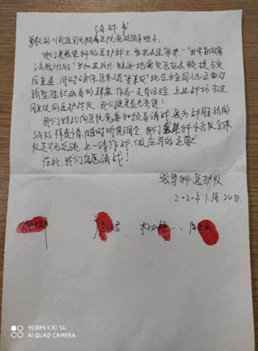 一份份請戰(zhàn)書、一個個鮮紅的手印,按下的是他們無悔的選擇,也是他們心中堅定的信念。
