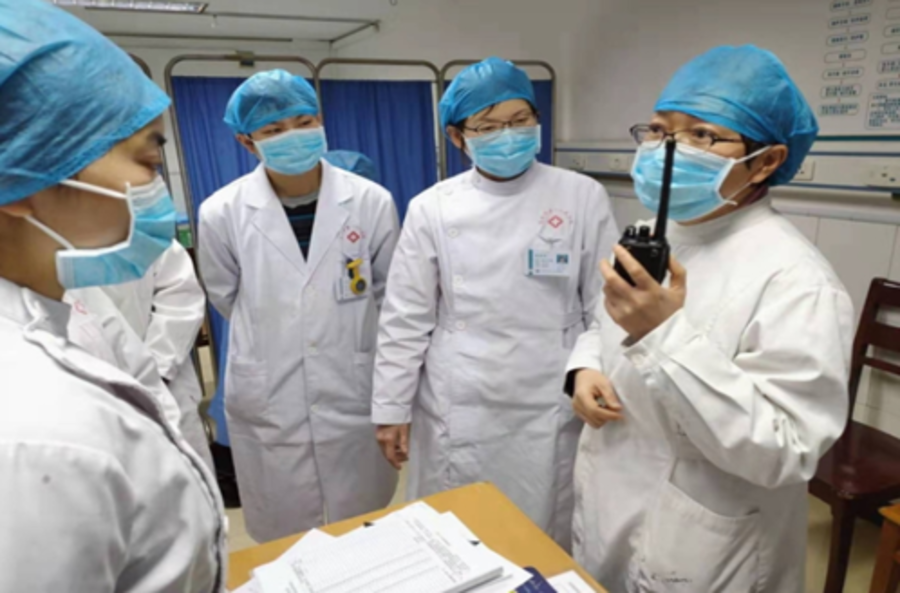 成都彭州人民醫(yī)院感染科主任翁幫瓊正在診治病患