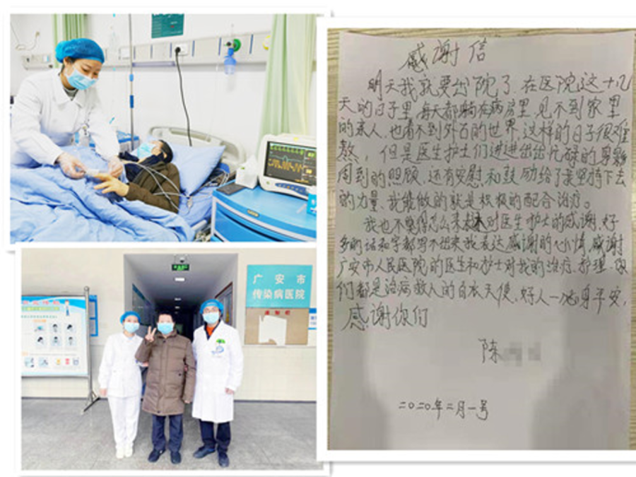 廣安社員陳靜耐心護理病患和病患的感謝信