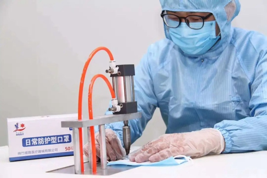 2月24日,德陽市綿竹耀隆醫(yī)療器械有限公司總經(jīng)理曹洋興奮地在朋友圈宣布:“經(jīng)過20余天的緊張籌備,我們第一只口罩試機(jī)成功啦!”