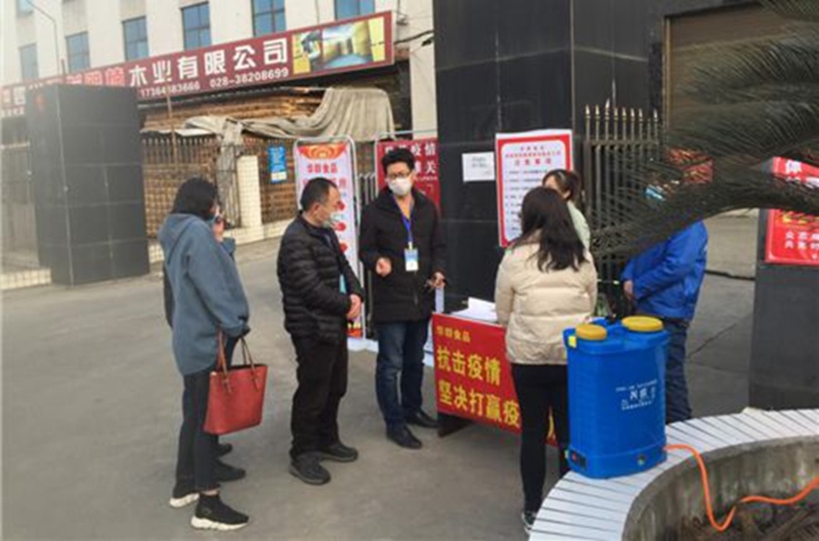 2月21日,九三學(xué)社眉山市東坡區(qū)委主委秦維東、副主委孫倩來到眉山川樂食品、漢超食品、華群食品等工業(yè)企業(yè),對企業(yè)復(fù)產(chǎn)復(fù)工疫情防控措施、物資儲備、隔離間設(shè)置、食堂就餐等進(jìn)行了實(shí)地查看。