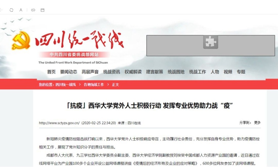 新冠病毒疫情發(fā)生以來,四川的各個九三社員群都在熱烈轉(zhuǎn)發(fā)“華西商教授的公眾號”。