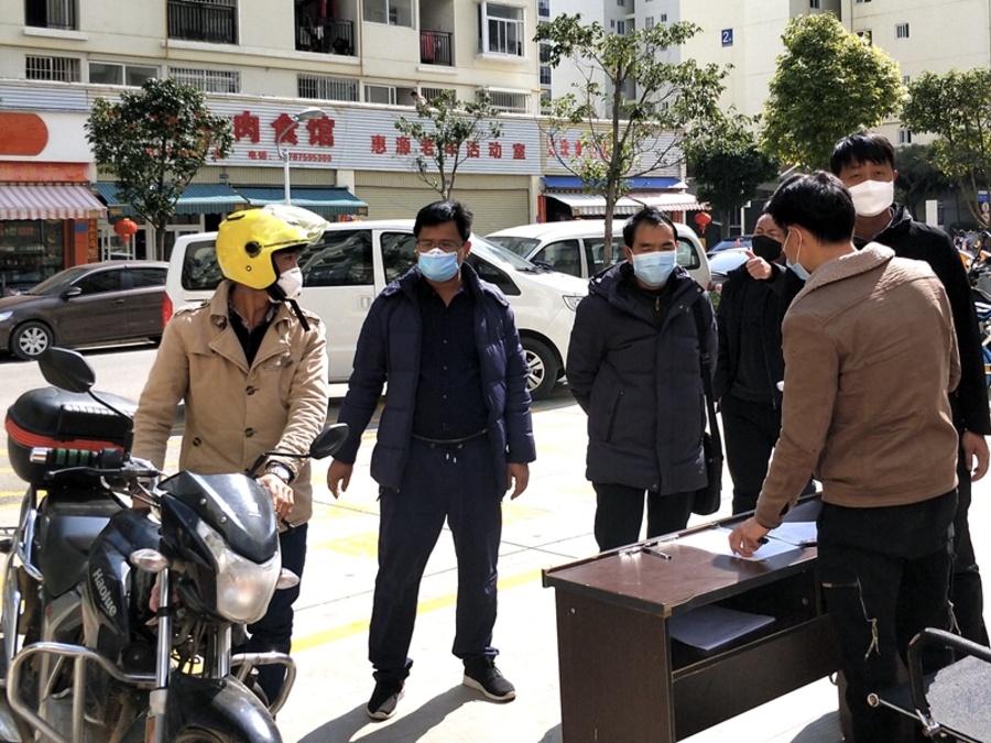今天看到段在賢,是聯防聯控工作第29天了,他拖著扭傷的腳,已經在崗位上堅持步行巡查一個星期了。段在賢說:“大年三十那天的年夜飯,你家一個菜,我家一個湯,湊合著吃了,就立馬工作了。”他帶領團隊積極做好摸底排查,每天在崗值守,嚴格按照“八個一律”要求,對所有外來人員進行排查并登記造冊,做到一人不漏;認真做好宣傳引導工作,規勸在小區公共區域聚集聊天、打牌群眾等,提高住戶安全意識。