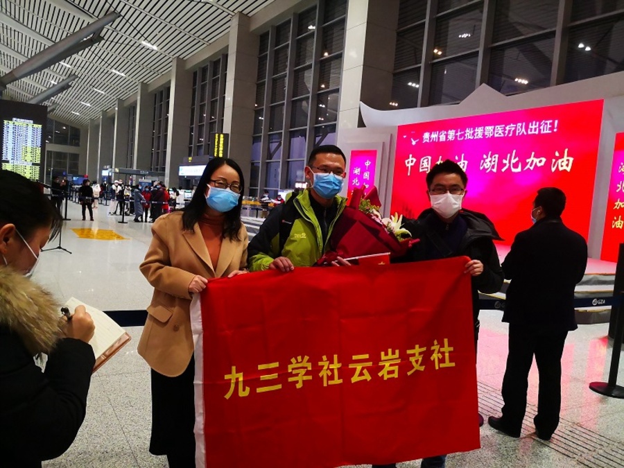 2月19日晚,九三學(xué)社貴陽市社員陳軍、劉昕參加貴州省第七批援鄂醫(yī)療隊(duì)出征湖北。