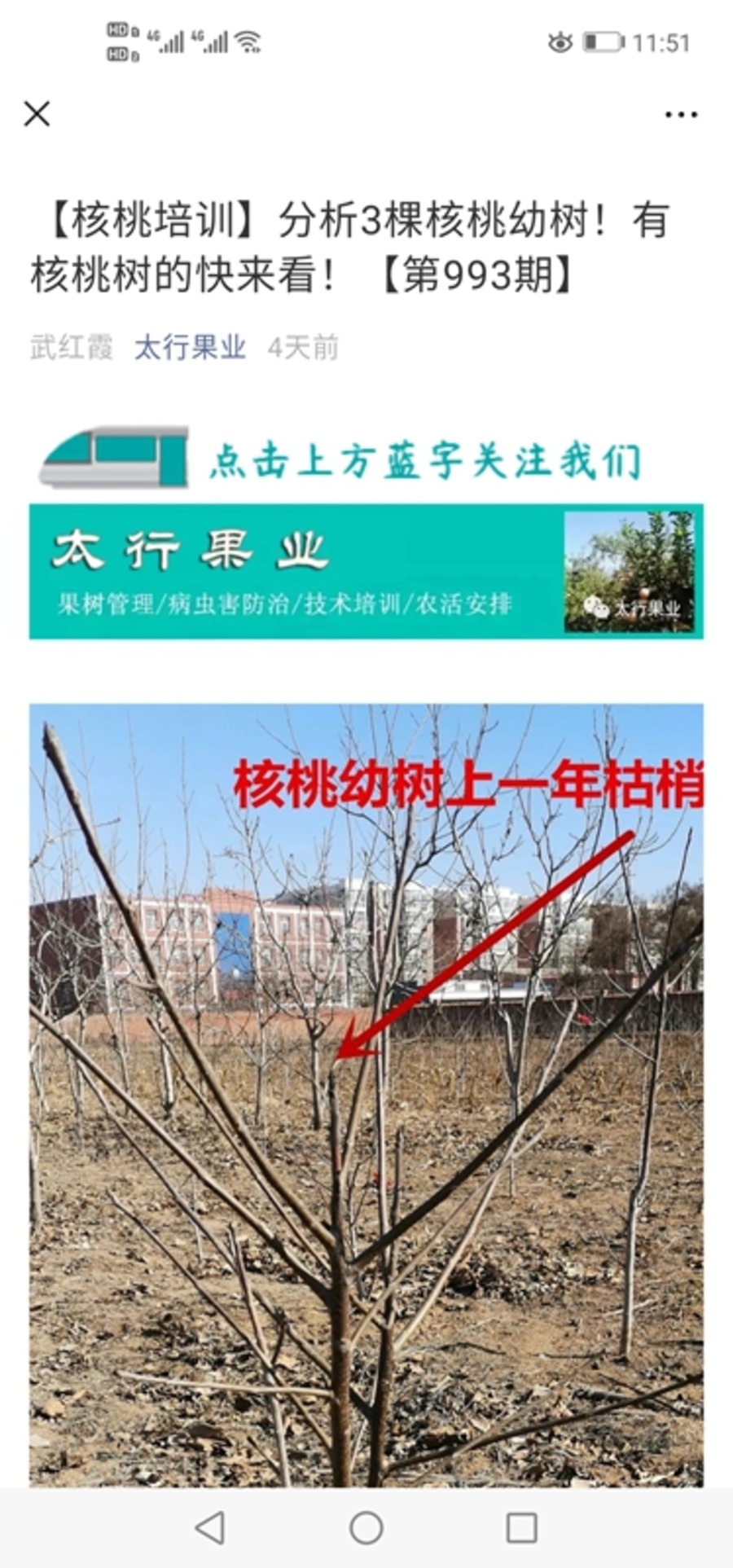 節(jié)氣不等人,春日勝黃金,疫情發(fā)生后,她第一時(shí)間想到的是邢臺縣果樹主產(chǎn)區(qū)疫情發(fā)生情況,春季是果樹管理的關(guān)鍵季節(jié),由于疫情的影響,不能開展集中培訓(xùn),為了不耽誤果農(nóng)的生產(chǎn),她晚上下班后,利用“太行果業(yè)”公眾號和微信群為果農(nóng)進(jìn)行線上培訓(xùn)和答疑,由一名林果專家變成了名符其實(shí)的“網(wǎng)絡(luò)主播”,臥室成了她的工作室,近一個(gè)月時(shí)間鐵桿粉絲就達(dá)1萬多人,從果農(nóng)不斷豎起的大拇指,還有那一張張憨厚的笑臉中就能真切地感受到隔著手機(jī)屏幕的溫度。從網(wǎng)上開播以來,她共通過公眾號舉辦培訓(xùn)200余期,培訓(xùn)5.8萬人次,內(nèi)容涵蓋了板栗、核桃、棗、酸棗、蘋果、桃等果品的春季管理、病蟲害防治、土肥水管理等多項(xiàng)內(nèi)容。通過參加她的課程,果農(nóng)的果樹管理水平得到了顯著提高,全縣果品生產(chǎn)也在有條不紊地進(jìn)行,最大限度地降低和減少疫情帶來災(zāi)害損失。