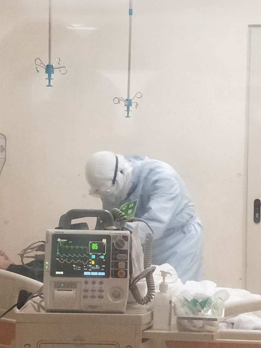凌晨六點了,再次穿隔離服,進病房進行咽拭子采樣。采集咽拭子,是一個非常危險的工作,稍一不注意就有被感染的風險,心中難免忐忑,但我對自己有信心!進去先看了看老大爺,監護儀各項指標也都有好轉。見我去了,他睜開眼向我揮揮手,說:”我好多了,謝謝你。”老人眼角的笑容讓我覺得一股暖流涌上心頭。是啊,疫情終將會過去,但醫生與患者之間的真情永遠不會消失。奮戰了一夜,雖然是冬夜,穿在里面的刷手服濕透了又干了,無法預測的狀況接踵而來,但作為醫生的職責、作為九三人的使命讓我無所畏懼!(王濤)