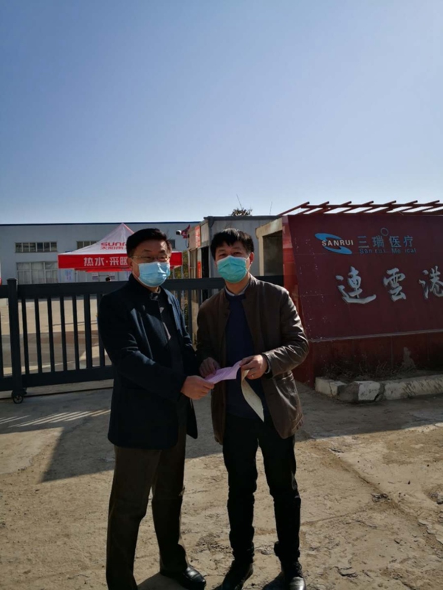 2月22日,社江蘇省委副主委、社連云港市委主委徐大勇,社連云港市委專職副主委陳曉平代表社市委分別前往市第四人民醫院、市一級隔離防護小區河畔花城工作現場和連云港三瑞醫療器械制造有限公司慰問孟爾旺、陳丹、劉保等奮戰在抗疫一線的社員代表。慰問過程中,徐主委一行調研了市第四人民醫院開展科學防控、精準防疫的工作情況,參觀了三瑞醫療醫用口罩生產線,了解企業復工復產等相關情況,在河畔花城隔離小區工作現場,徐主委親切慰問了疫情發生以來一直堅持戰斗在基層一線、至今沒有回過家的白衣戰士陳丹,詢問她的工作、防護和身體健康等情況,并叮囑她一定要在百忙之中做好防護,確保自身安全和健康。社市委于近期向所有承擔疫情防控任務的社員們寄去了慰問信,向前線的戰士致以親切的慰問和崇高的敬意。