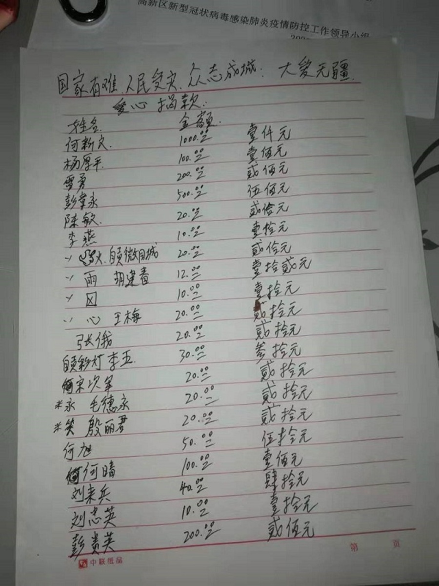 “國家有難,人民受災,眾志成城,大愛無疆。”這是彩燈商會捐款單上寫下的一句話,1月27-30日,九三學社自貢市委社員鐘東泉作為市彩燈行業商會會長倡議彩燈行業廣大職工也參與進來,一起募捐為抗擊疫情和防治疫情做一點貢獻,盡自己一點力量。他帶頭捐款6666元,并在市慈善總會的指導下與商會黨委組織商會牽頭開展“抗擊疫情募捐活動”,截止30日下午4點,共有400多人捐款,募集資金總額105147元。