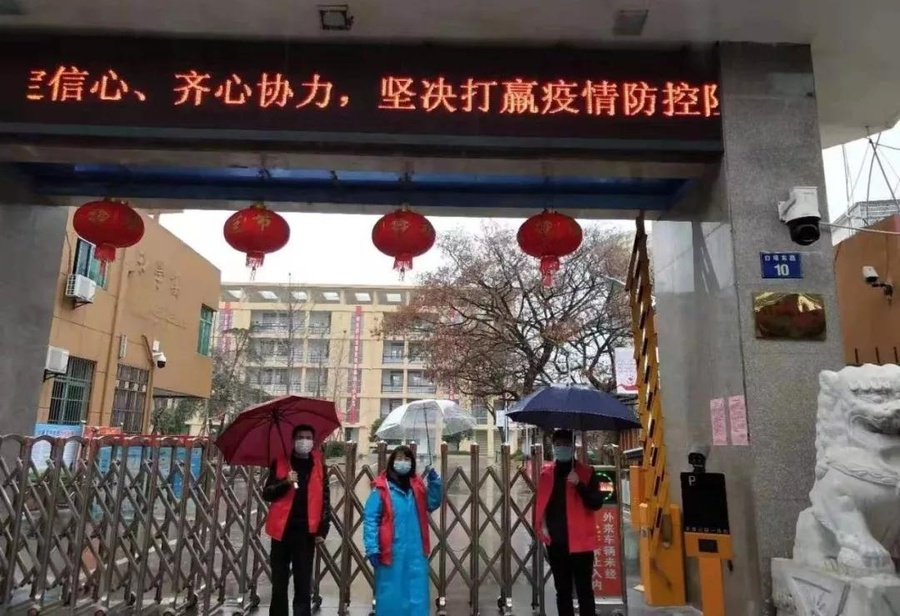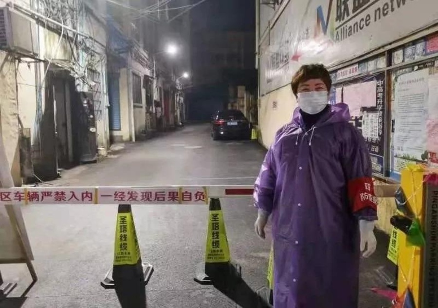 余素文,九三學社鷹潭市月湖支社社員。作為疫情防控志愿者,日夜堅守在防控一線,為百姓安全筑起一道"防疫墻"。圖為余素文在四青街道水泵廠社區五洲花園值班值守。