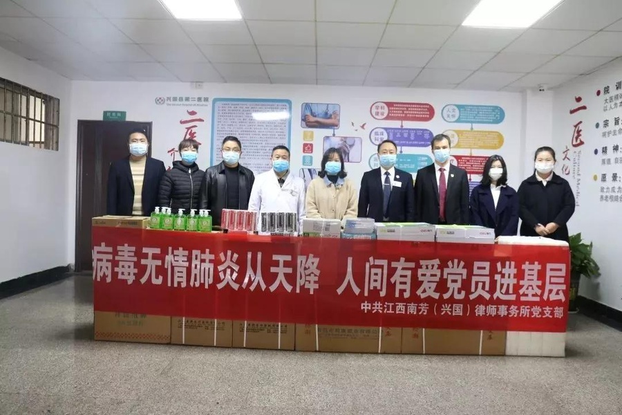 鐘堅元,江西南芳(興國)律師事務所合伙人、主任。他一直關注新型冠狀病毒肺炎疫情的動態,當了解到興國縣第二人民醫院醫療防控物資緊缺時,第一時間幫助籌集急需的物資。2月7日,他帶領律所同事向醫院捐贈了20大箱消毒液、20箱洗手液等價值近萬元的愛心物資,為助力抗擊新冠肺炎疫情盡一份綿薄之力。