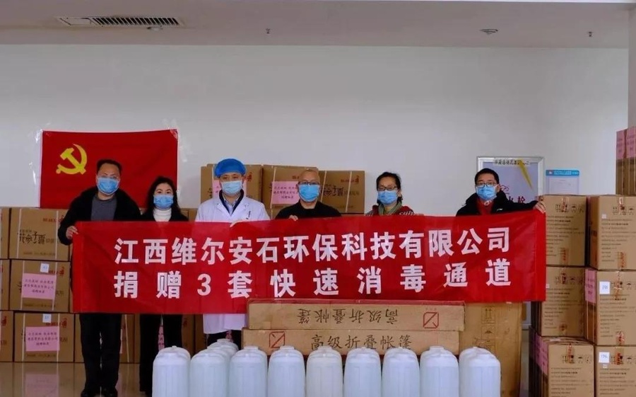 2月14日上午,在中共撫州市委統戰部和九三學社撫州市委會的共同協助下,江西維爾安石環保科技有限公司向抗疫一線成功捐贈了3套快速消毒通道,支援火車站出入口等人員密集場所的消毒防疫工作,為保障撫州市人民群眾的健康筑起了一道安全“防火墻”。