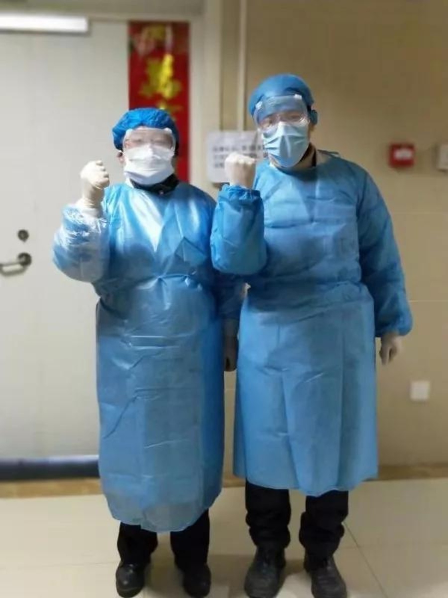 在這里,葉斌會師九三學社衛生支社另一位親密的戰友朱捷燕。朱捷燕也是衛生支社委員,呼吸科副主任之一。年紀50歲左右的她性格開朗,原本負責呼吸內科非感染組,但是在特殊的疫情面前,同樣拋棄了門派之別,毅然分擔起感染性肺炎的診治工作。就這樣,葉斌和朱捷燕兩位同在九三學社衛生支社的戰友居然被這場沒有硝煙的戰役再次聯系在一起,共同為抵制新冠這個惡魔盡一己之力。呼吸科二樓就是發熱性肺炎需要排查新冠的隔離區,就在幾天前,這里成功確診了幾例新冠肺炎患者轉至感染科治療。葉斌和朱捷燕每三天就要穿上藍色的隔離衣,戴上緊繃的護目鏡領著年輕醫生進入到這里深入查房。一般在隔離區住院的待診發熱肺炎患者心情非常復雜,家屬也很焦急。他們都會在診查結束后為他們詳細的解釋,給患者鼓勵,安慰,讓他們樹立戰勝疾病的信心。