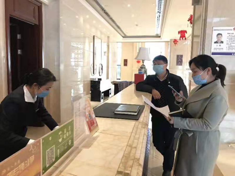 社員郭興梅在貴安新區(qū)涉旅企業(yè)排查現(xiàn)場(左一)