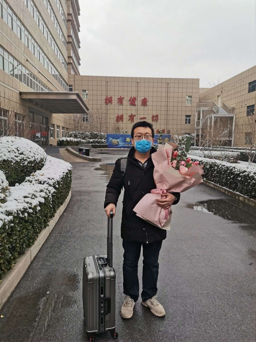 前一分鐘,他還在醫院堅守崗位;后一分鐘,他就打起背包準備出發。來不及和家人道別,院領導和肺炎指揮部的工作人員帶來鮮花為他送行。“離病毒最近的人”,我們等你平安凱旋!