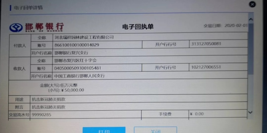 2月1日,九三社員、唐山匯中股份董事長張力新代表公司向唐山高新區(qū)管委會捐贈50萬元,個人捐贈20萬元,用于支持抗擊新型冠狀病毒感染肺炎疫情。