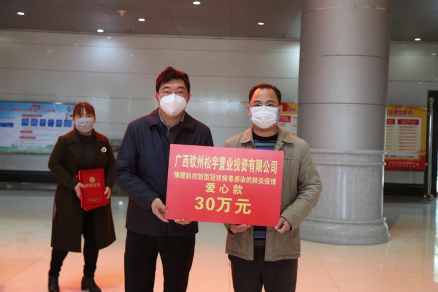廣西欽州松宇置業投資有限公司總經理、社員張凌云向欽州市欽南區紅十字會捐贈30萬元愛心款,為在一線防控疫情基層單位和干部,專項購置防控用品。