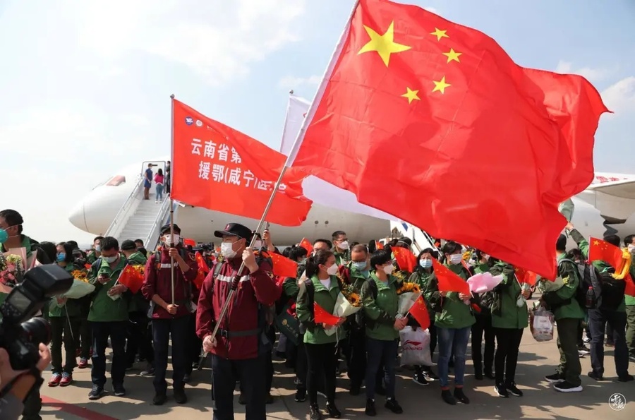 “白衣執甲行千里 英雄凱旋彩云歸。”近日,云南省754名支援湖北醫療隊員圓滿完成任務,平安返回云南。省委、省政府在昆明長水機場舉行隆重儀式,熱烈歡迎英雄回家,4架載著醫療隊員的飛機陸續降落在昆明長水機場停機坪,機場以隆重的“水門禮”致上敬意,為醫療隊“接風洗塵”。據悉,在云南省支援湖北醫療隊中,九三學社社員共有6名,他們積極響應號召,主動請纓,逆行而上,投身于千里馳援湖北的醫療隊中。