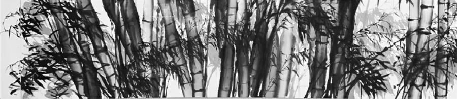 我也愛竹,并師竹、學竹、畫竹、頌竹。于是,竹就成為我表達心中無限感動、無盡感慨的第一選擇,也便有了這片竹林———《風雨見真情》。這幅作品,由6頁6尺宣紙橫拼組成,長5.2米、寬1.8米,取竹干的最堅韌部分,結實有力,竿形尤其粗大、挺拔,上頂“天”,下立“地”;竹干之間密而不擠,互相依傍,虛實相生,每每交叉斜貫,力到意到,富有蒼勁之感。竹子有粗有細,有新篁,有老干,筆筆交代清楚;主干和小枝前后交錯,互相呼應,剛柔相濟。強健的枝干似有風吹過,蕭蕭颯颯,如疾風振林,凸顯一種勃發的生命力。逢風遇雪,不蔓不枝,依然向上延伸,風雨中可見真情。