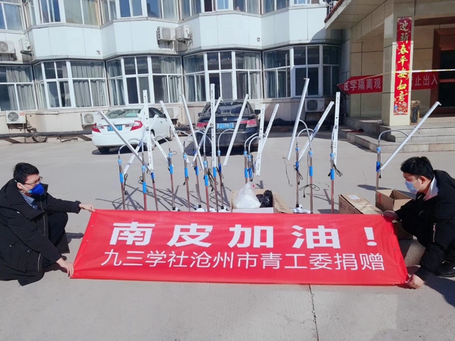 九三學(xué)社滄州市青工委認(rèn)真落實(shí)社市委要求,在得知滄州市疫情較為嚴(yán)重的南皮縣,缺少紫外線消毒儀、防護(hù)服、口罩等醫(yī)療物資時(shí),自發(fā)開(kāi)展了捐助活動(dòng)。青年社員紛紛解囊,并利用多種渠道尋求醫(yī)療物資。在大家的共同努力下,2月18 日上午,一輛滿載著九三學(xué)社滄州市青工委捐贈(zèng)物資的中巴車(chē)抵達(dá)南皮縣賓館醫(yī)療隔離點(diǎn)。此次活動(dòng),九三學(xué)社滄州市青工委共捐贈(zèng)防護(hù)服45套,手套100副,醫(yī)用口罩610個(gè),紫外線消毒儀16臺(tái),護(hù)目鏡200副,助力南皮打贏疫情防控阻擊戰(zhàn)。(岳建玲)