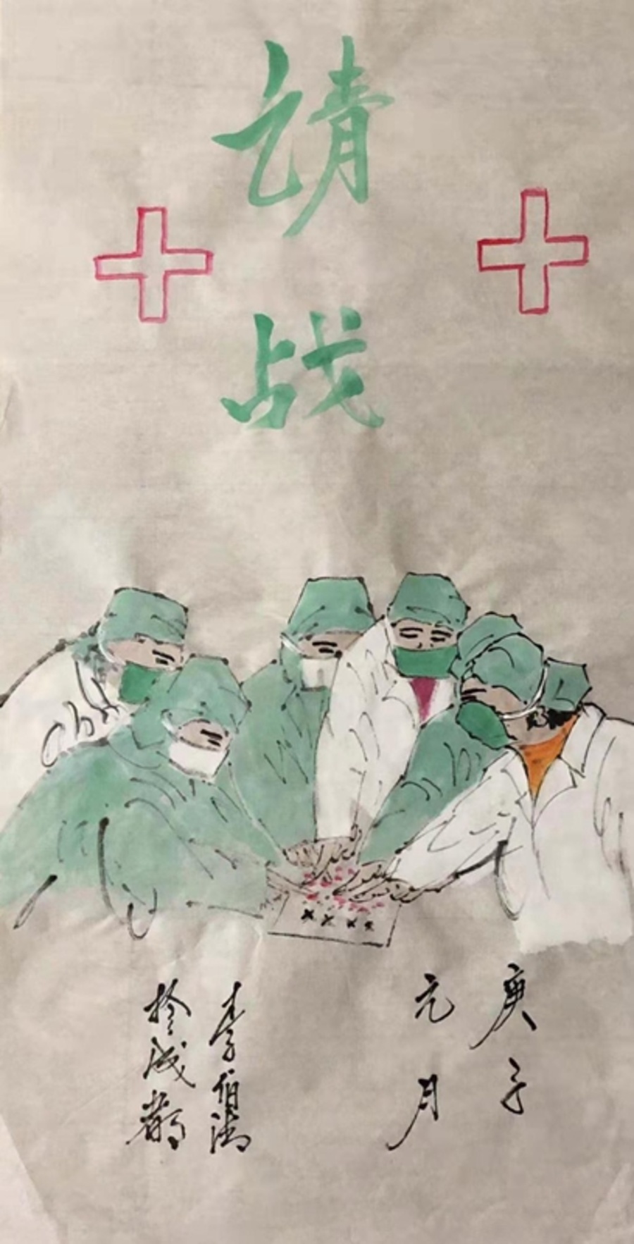 “我們無法像白衣逆行者那樣奔赴一線,也不能像基層網格員那樣入戶摸排,唯有以翰墨寄真情,以妙筆抒大愛, 為戰“疫”吶喊助威,祈愿早日掃疫除魔,還我國泰民安!”
