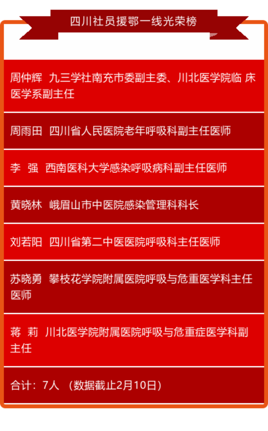 壯士出川振國威,凱旋歸來唱英雄。截至2月10日,四川共有7位九三社員出征湖北。
