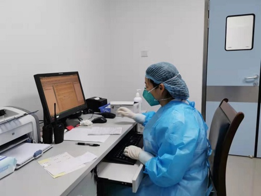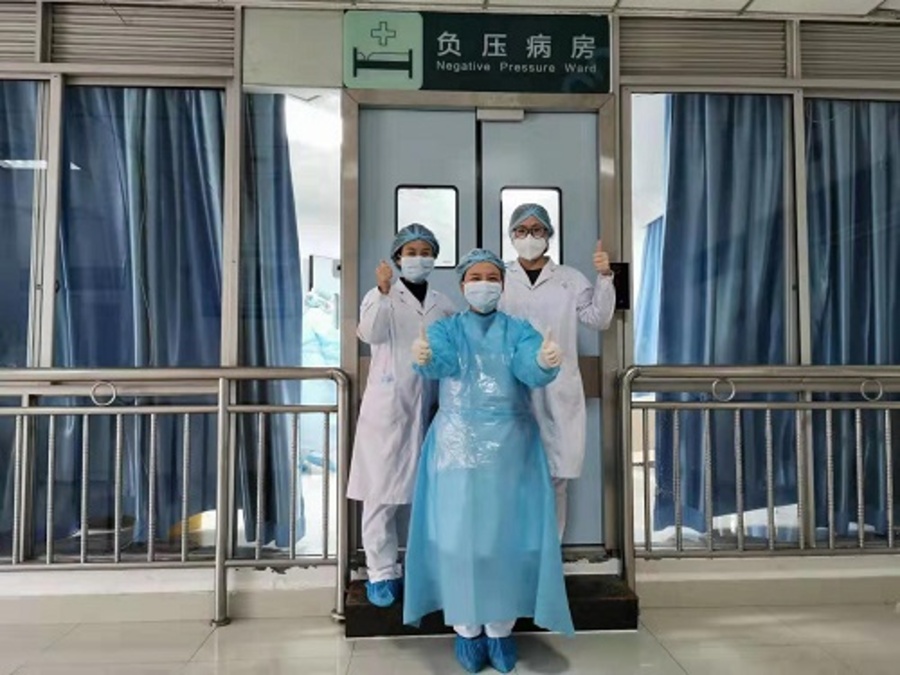 來到醫院的第三住院大樓,大樓前已經拉上了警戒線,它已成為了我們的隔離病房。我戴好口罩,帽子,穿上工作服走進了隔離區。夜靜得害怕,瞬間感覺到了一絲絲緊張的氣氛。沿著醫務人員通道,我來到了負壓病房。現在這里就真正感覺到了一股硝煙味,這里是我們真正的戰場!當穿上防護服,隔離衣,戴上眼罩,防護面罩,這一刻,我真正感覺到了前所未有的緊張和害怕,前段時間還覺得是紙上談兵的病毒,突然離我們這么近。人非草木,孰能無情,想到我們的職責,我們的使命,我們這批奮斗在隔離病區的三十多名醫護人員,相互鼓勵,相互打氣,為患者進行有條不紊的診治。慢慢地大家也都不那么恐懼了。穿上笨重的防護服,帶上眼罩,防護面罩,時間久了汗水濕了衣服,眼罩也模糊了,平時幾分鐘的操作,可能要多花幾倍的時間才能完成。我們大家都是輪班制度制,我們在病房內要呆六個小時,取下帽子,口罩,眼罩時在臉上留下了深深的印記,有時候實在太困了,我們在辦公室椅子上坐著就睡了,這也成了我們最美睡姿。這樣的工作雖然苦,雖然累,但大家想到自己肩負的使命和責任,都堅持了下來,都團結一致積極地沖到了最前面。疫霾下一點一滴患者捷報數據,是我們工作后最大的一點安慰。