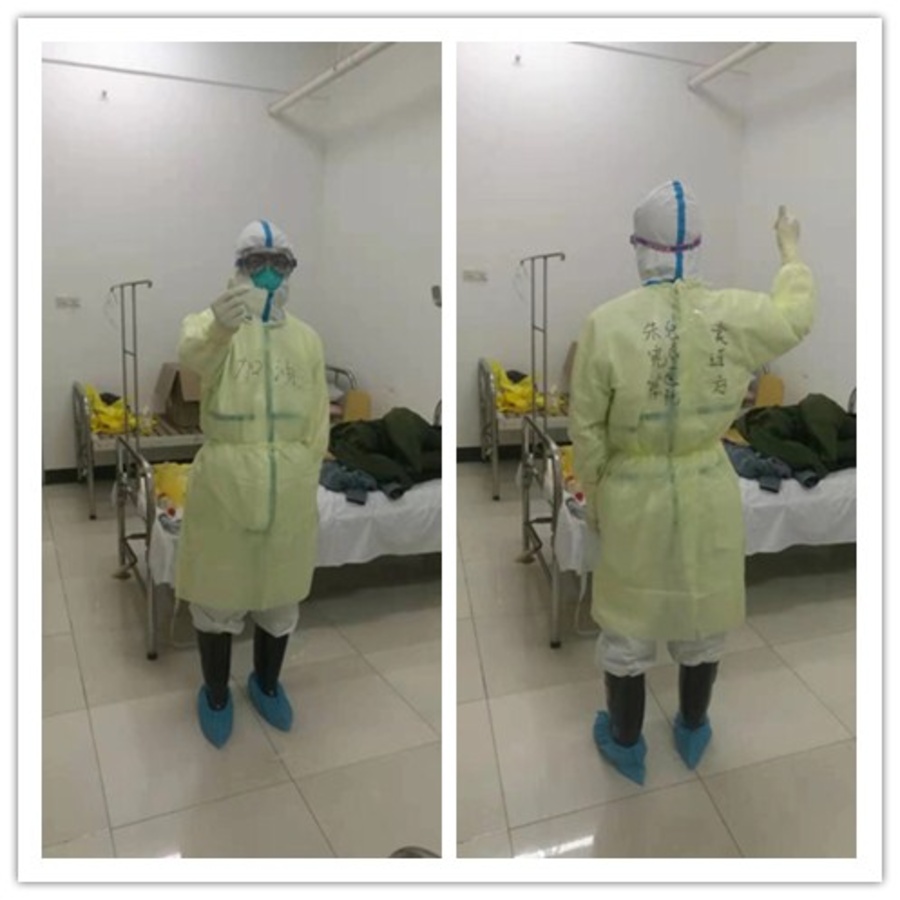 醫護人員也在逐漸適應身穿防護服以后的缺氧和悶熱狀態,互相的配合越來越默契,從第一次進去東南西北都摸不到門四處亂撞,到現在可以最迅速的說出每一個床的位置和病人特點,護目鏡上的水汽增加了護士們打針輸液的困難,她們也可以克服用最快的速度建立靜脈通路,可見這群護理人員都是各個醫院的精英力量,下午四個小時的班,查完所有病人,還新收兩名患者,給出詳細的治療方案,大家有條不紊,忙中有序,保質保量地完成了任務!”。