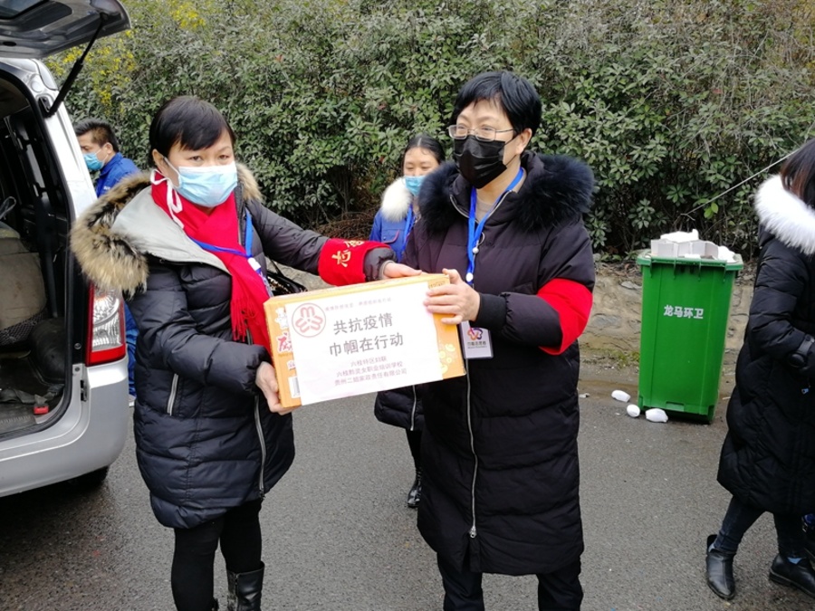 社員喬玉梅(右一)及六枝婦聯慰問戰斗在一線的劉志西站和巖腳站的同志們