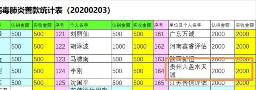 社六盤水鐘山支社社員陳波個人及所屬企業捐款2500元,通過云估價聯盟購買醫療物資捐贈武漢市金銀潭醫院