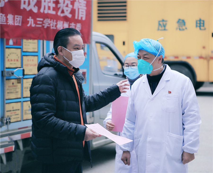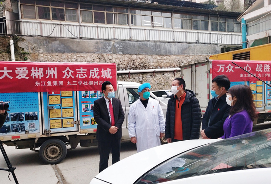 疫情肆虐,牽動著郴州九三社員們的心,如何為在一線辛勤工作的醫護人員做好服務?市政協副主席、九三學社郴州市委主委、市科技局局長潘執坤多次與郴州市第二人民醫院院長方力溝通,當得知一線醫務人員由于勞動強度大,穿著防護服連吃飯都不方便,食欲也不佳,潘執坤立即與東江湖集團董事長、郴州九三預備社員周小文聯系,詢問是否可以捐贈一批東江湖食品,周小文得知情況后,迅速行動,加班加點生產,2月1日,迅速將42大箱,價值6萬多元的東江魚熟食送到醫院,發放給一線醫護人員。由于工人現在大部分都放假,周小文親自裝車,親自開車從資興將貨物送到郴州市第二人民醫院。