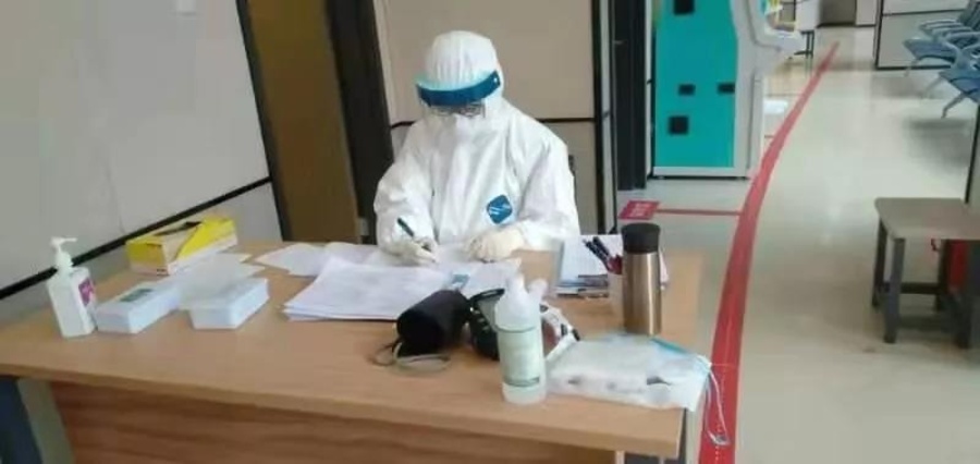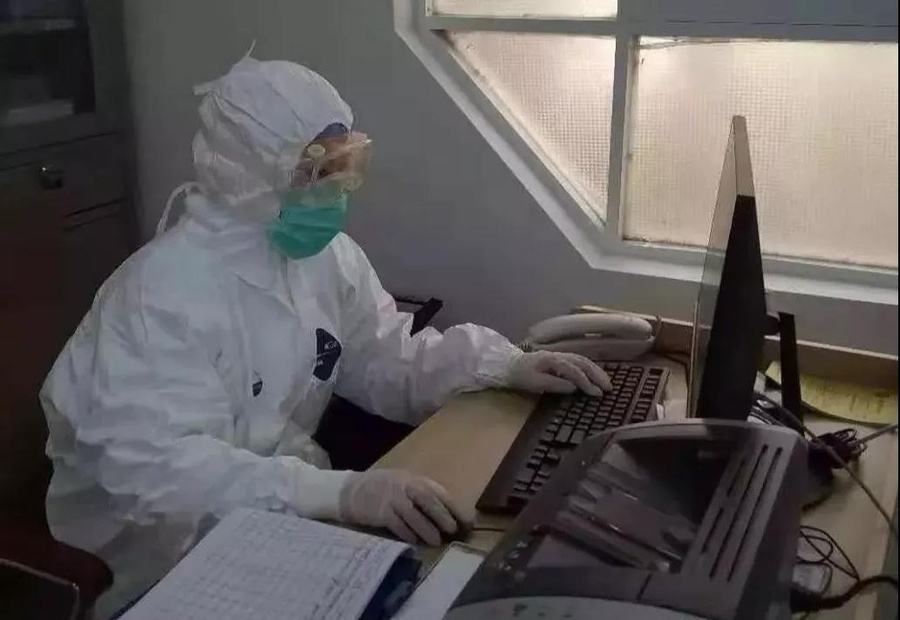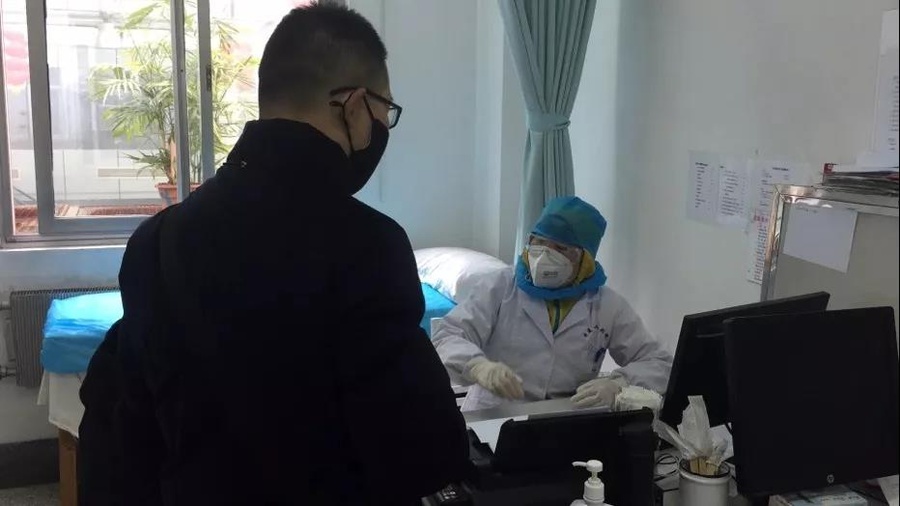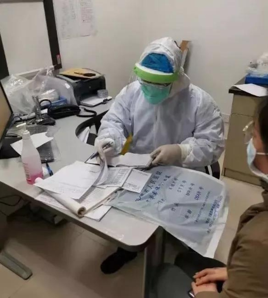 社員、副主任醫師劉峰參加醫院發熱門診工作,會診武漢來的發熱病人。