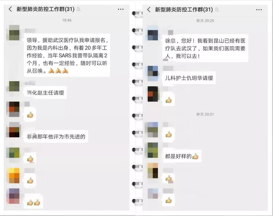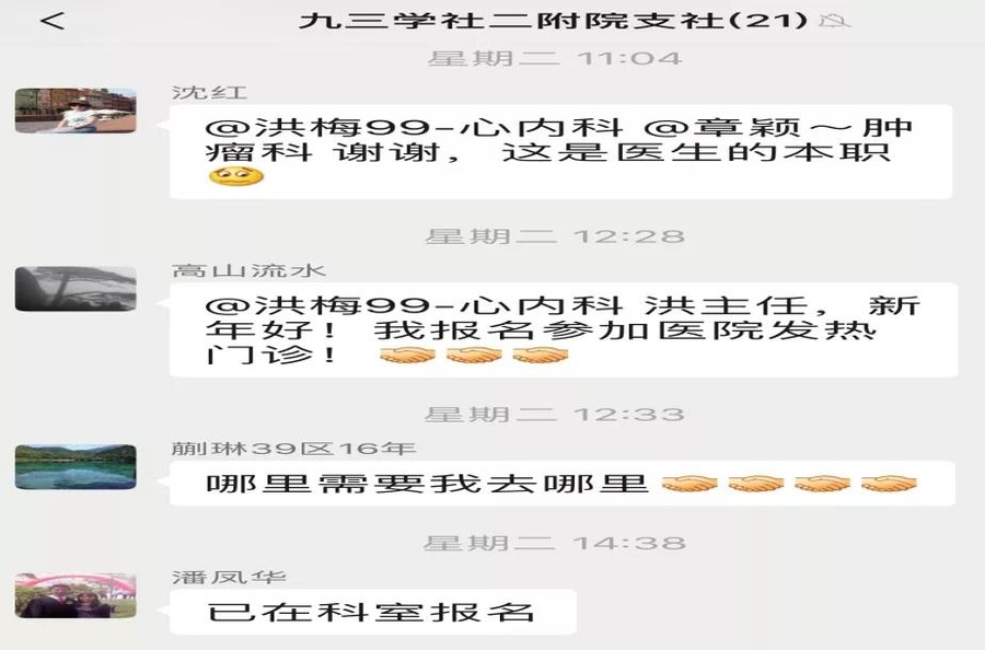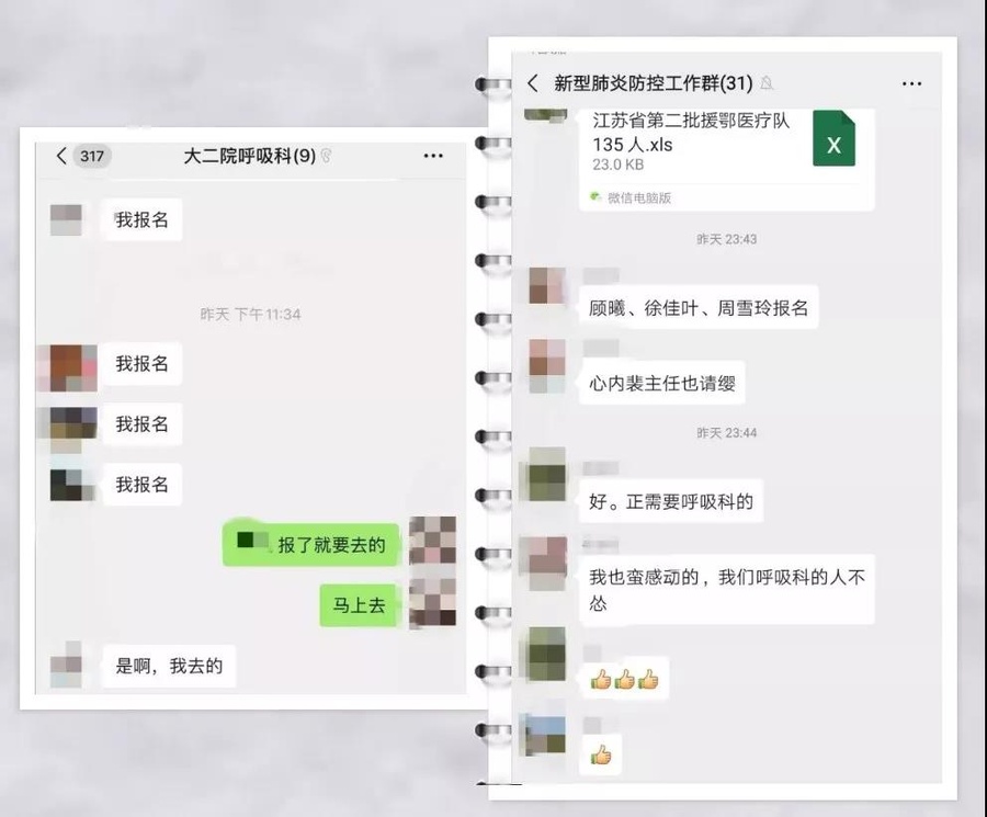 1月28日中午,在九三學社南醫大副主委洪梅主任的帶領倡議下,“二附院招募志愿者備戰支援武漢”的信息一經發出,大家紛紛請愿,參與支援。中醫科高祥華主任不僅主動要求去發熱門診值班,并在工作群中實時科普中醫抗擊新型冠狀病毒的知識;有著20年臨床護理經驗的心血管中心主管護士洪玲,曾參加2003抗擊非典戰役,也主動報名。“哪里需要,我就去哪里”“在疫情面前,我有義務沖在前,不分崗位,堅決服從工作安排”…… 一瞬間,一句句“請愿備戰”,一句句“隨時待命”在群里刷屏。